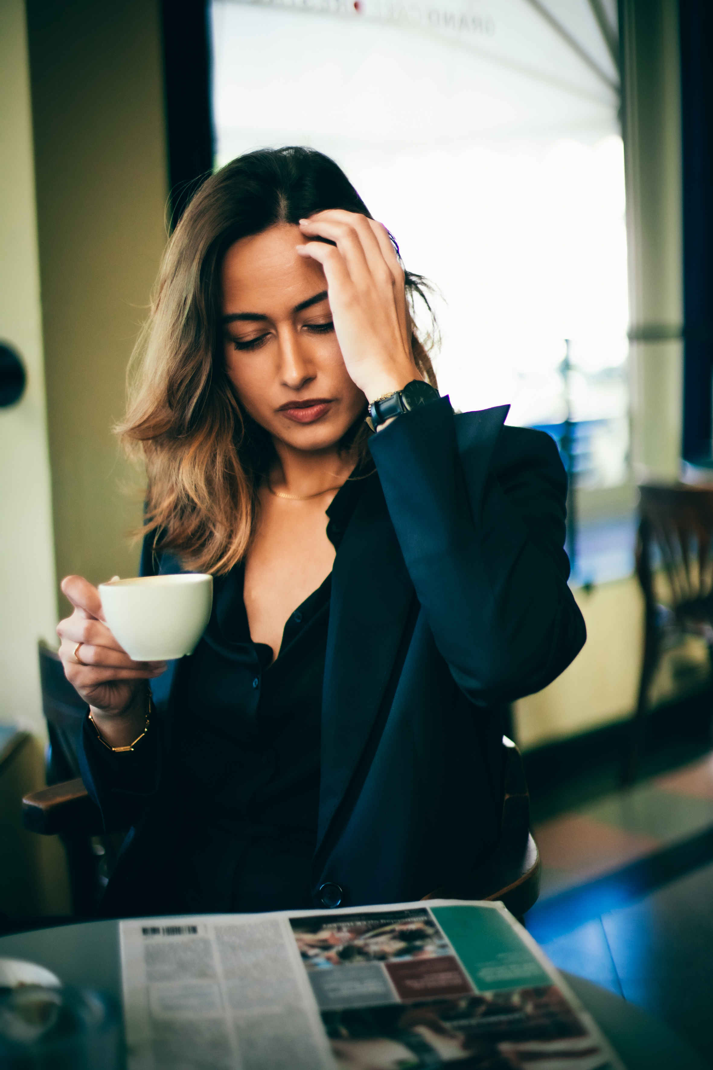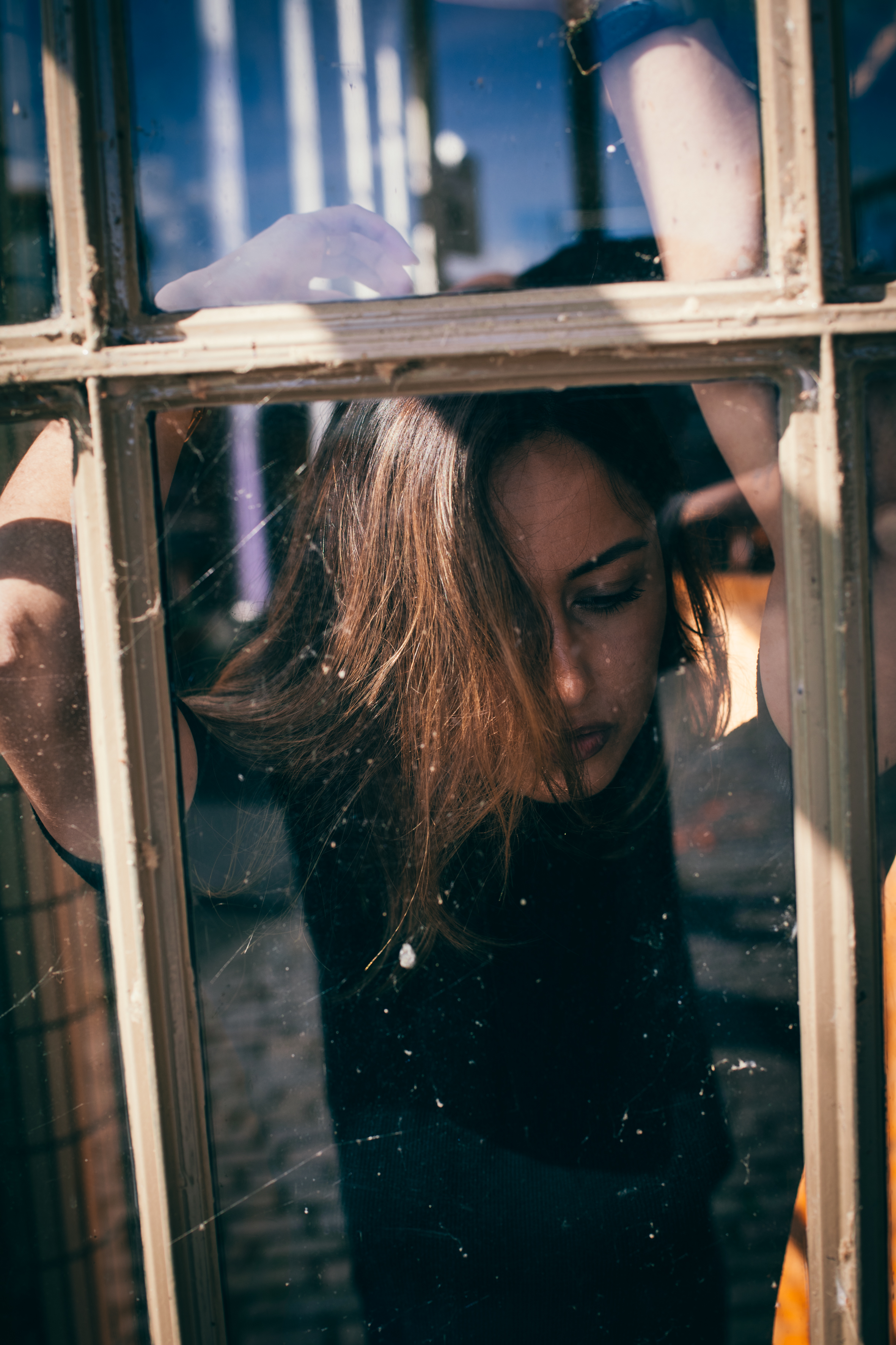 As we start, he talks me through the possibilities he sees and allows me to pose in a way that feels natural to me, professionally guiding me through adjustments that he feels work best on camera. Every so often he stops and shows me the images he’s excited about and I can’t help but be in awe. The way he manages to capture a feeling in a single frame is astonishing. He takes note of the pipes running over the walls, the reflection in the window and even the way the fabric of my clothes moves. Assessing in a split-second how he can make it work or if he wants to sidestep it altogether.